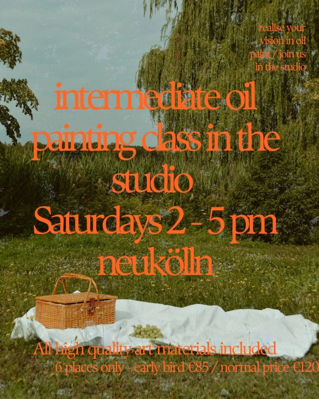Oil painting class Tuesday 4th November 12:30 - 14:30 €60.00 Oil painting class Tuesday 11th November 12:30 - 14:30 €60.00 Figure painting class ( 3 hours ) Tuesday 18th November 18:30 - 21:30 €30.00 Figure painting class ( 3 hours ) Tuesday 25th November 18:30 - 21:30 €30.00 Friday 12th December 6 - 9 pm €85.00 Saturday 13th December 2 - 5 pm 2025 Sale Price: €85.00 Original Price: €120.00 Sale Friday 16th January 6 - 9 pm Sale Price: €85.00 Original Price: €120.00 Sale Saturday 17th January 2 - 5 pm 2025 Sale Price: €85.00 Original Price: €120.00 Sale Friday 6th March 6 - 9 pm Sale Price: €85.00 Original Price: €120.00 Sale Saturday 7th March 2 - 5 pm 2026 Sale Price: €85.00 Original Price: €120.00 Sale Saturday 14th March 2 - 5 pm 2026 Sale Price: €85.00 Original Price: €120.00 Sale Saturday 2nd May 2 - 5 pm 2026 Sale Price: €85.00 Original Price: €120.00 Sale Saturday 9th May 2 - 5 pm 2026 Sale Price: €85.00 Original Price: €120.00 Sale Gift Card ( hand-painted watercolour card ) a6 size from €80.00 Online consultation - one on one class ( 60 min ) €120.00 intermediate painting class in the studio -How to make oil paint in the studio Saturday 04.10 2 - 5 pm €120.00 Sold out